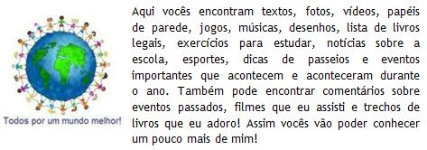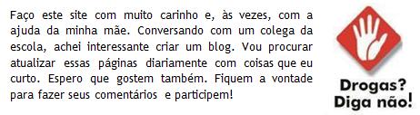 Poxa eu queria que vcs olhassem gostassem queria que esse site fosse ser famoso bombar mais vcs não olham nao aproveitam o que tem eu queria que vcs votassem nas enquetes mais não votam o que foi tem algo errado com meu site vcs acham que esse site é uma merda ,não, vcs não escutam as musicas que eu e a minha mãe gostamos o que foi? Se não gostarem falem o que vcs gostam que a gente fala não é fácil agradar os outros sabiam? Eu não sei nem pq eu to falando isso SE VOCES Não gostam do meu site devo tirar meu site sabe?
